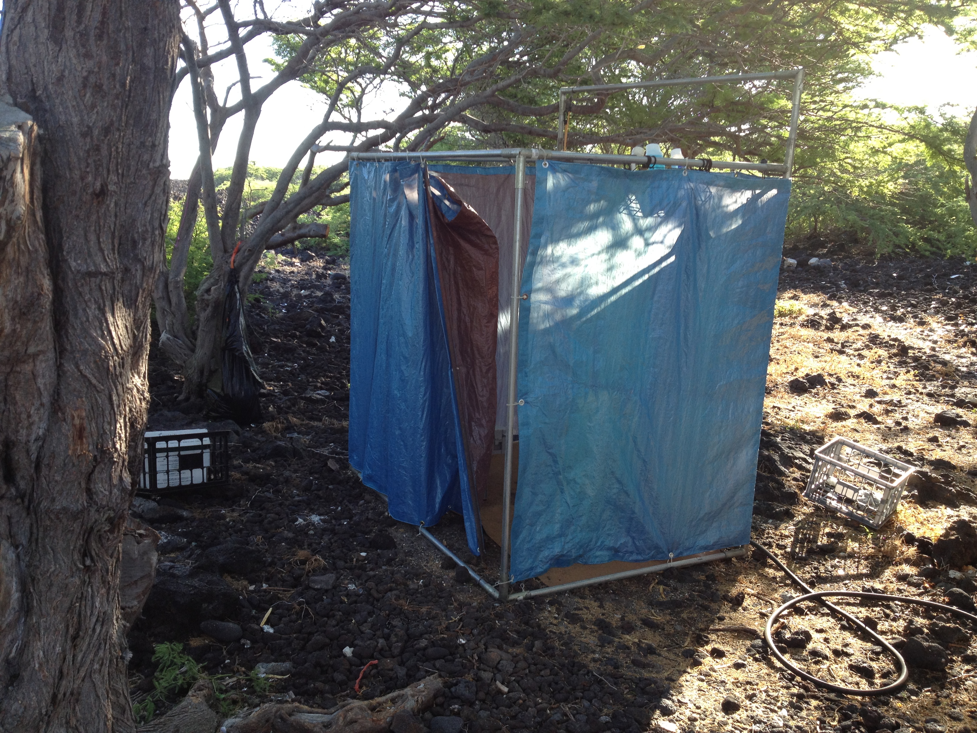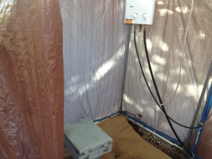 – detail of the lua showing ‘wag bag’ toilet and tank-less water heater (water pumped from van, 80 gallon capacity)